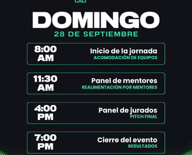 Desde la Cámara de Comercio de Cali, estamos comprometidos con el fortalecimiento del ecosistema emprendedor. Eventos como Startup Weekend son clave para ayudar a los emprendedores a encontrar soluciones innovadoras en solo unos días, transformar su mentalidad y acelerar su camino hacia el éxito. Creemos en el poder de la colaboración y la innovación para construir empresas sostenibles y de alto impacto.